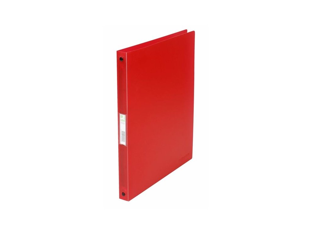- Kroužkový pořadač v červeno-průhledné barvě se štítkem na hřbetu