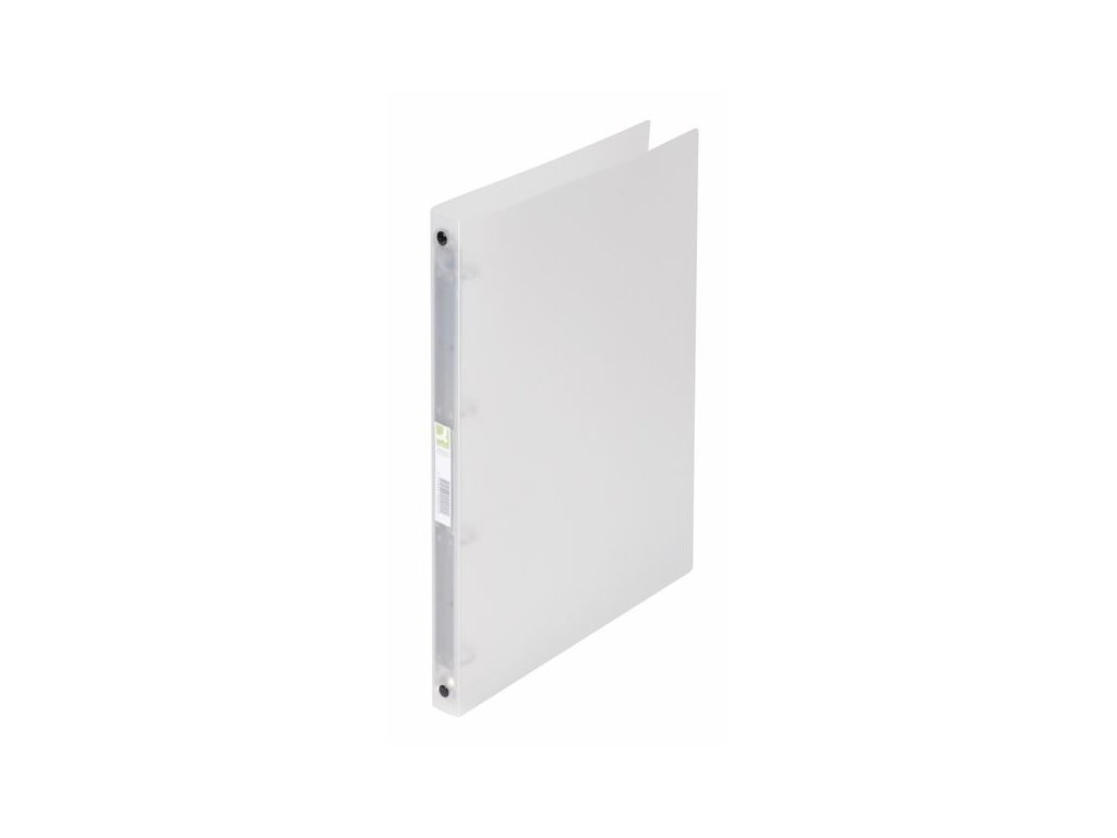 - Kroužkový pořadač v bílo-průhledné barvě se štítkem na hřbetu