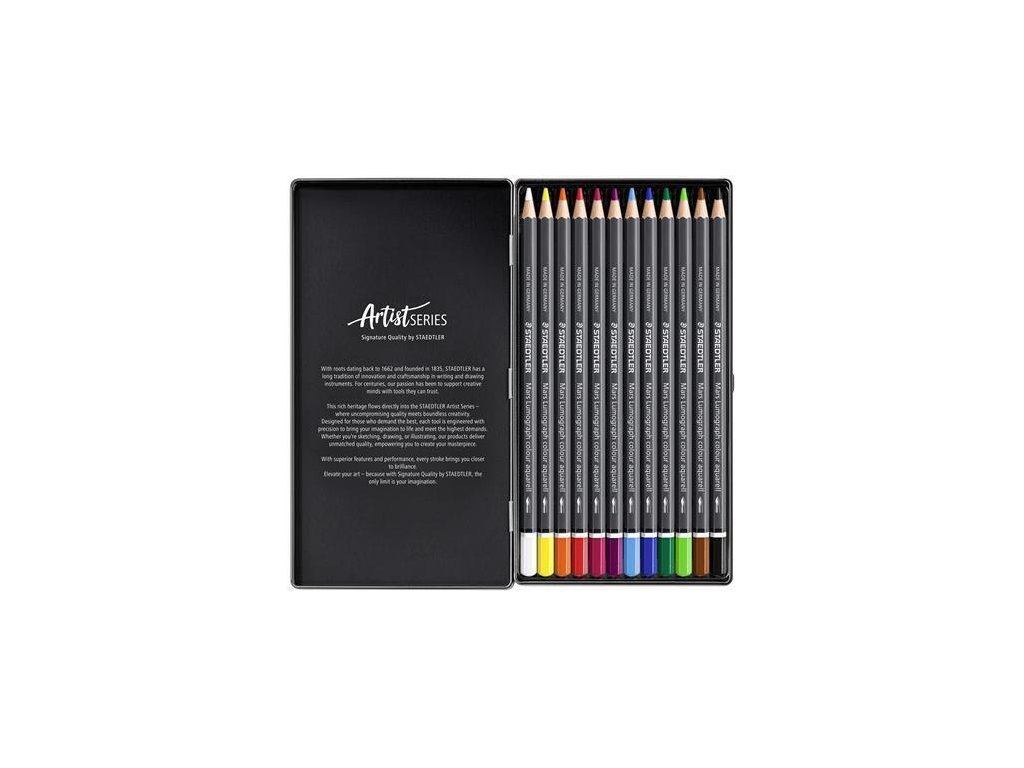 Akvarelové pastelky "Mars Lumograph 104", 12 barev, šestihranné, kovová krabička, STAEDTLER 104 M12