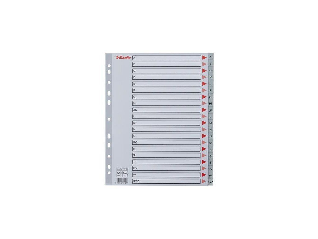 Barevné rejstříky, šedá, A4 Maxi, plast, A-Z, ESSELTE