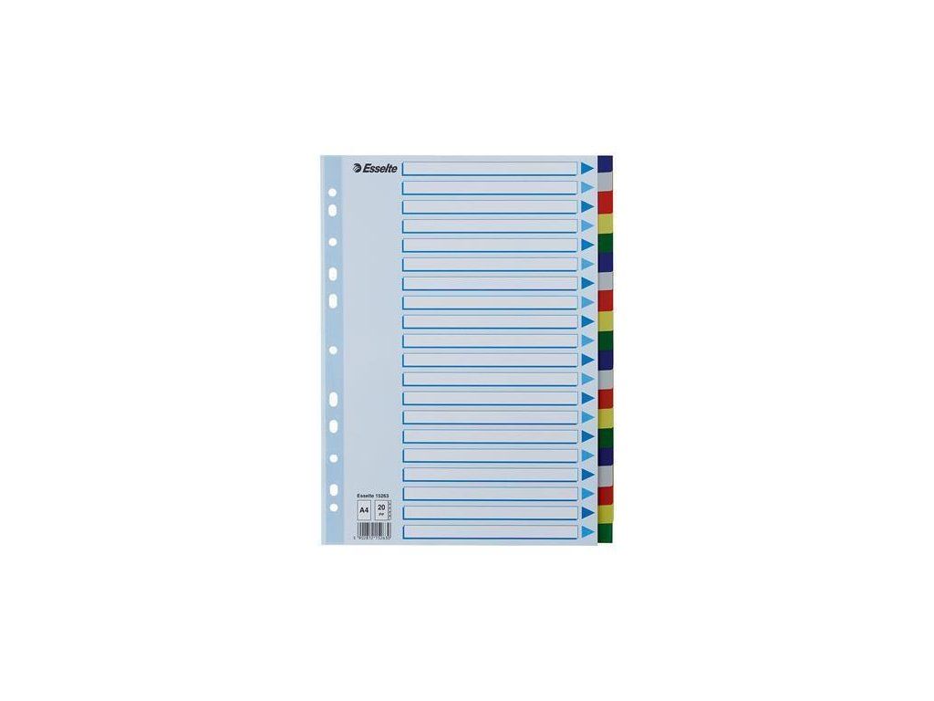 Barevné rozlišovače, mix barev, A4, plast, 20 dílů, ESSELTE