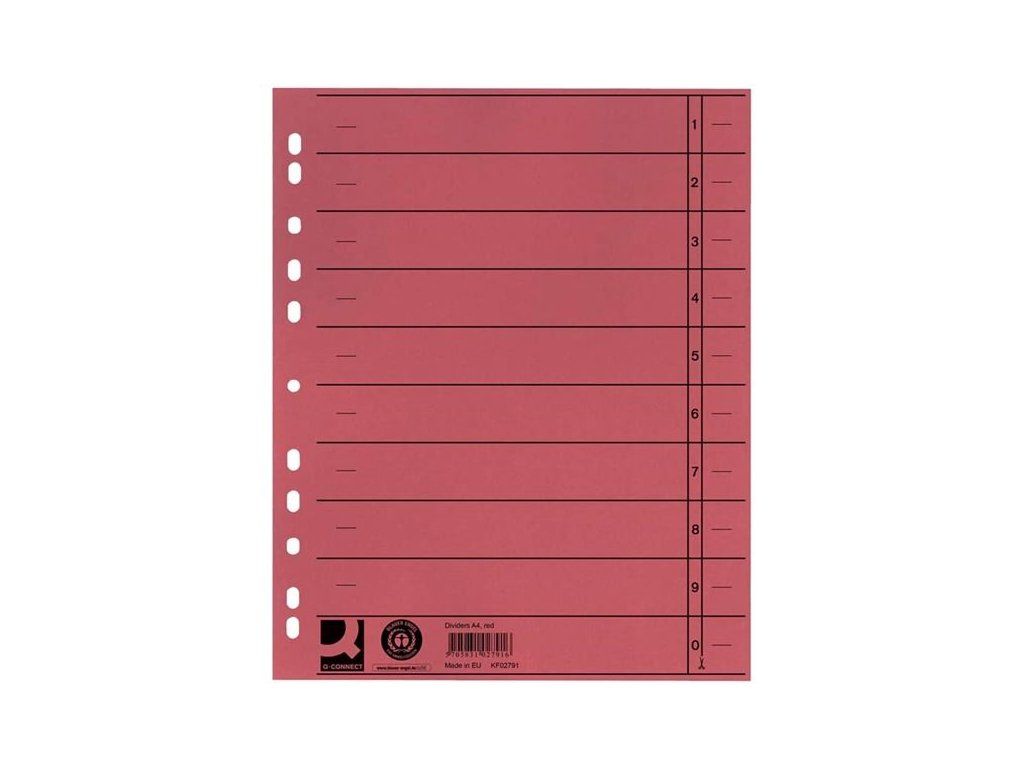 Barevný rozlišovač Q-Connect A4, 100ks, červený