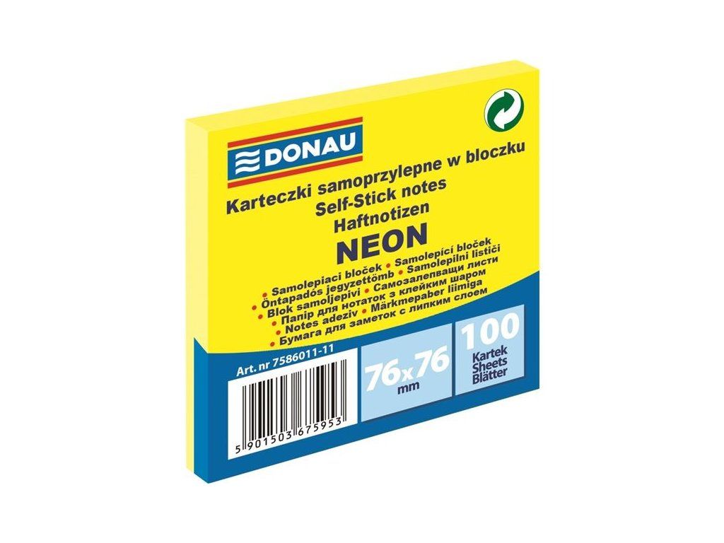 Bloček Donau, 76 x 76 mm, neonově žlutý