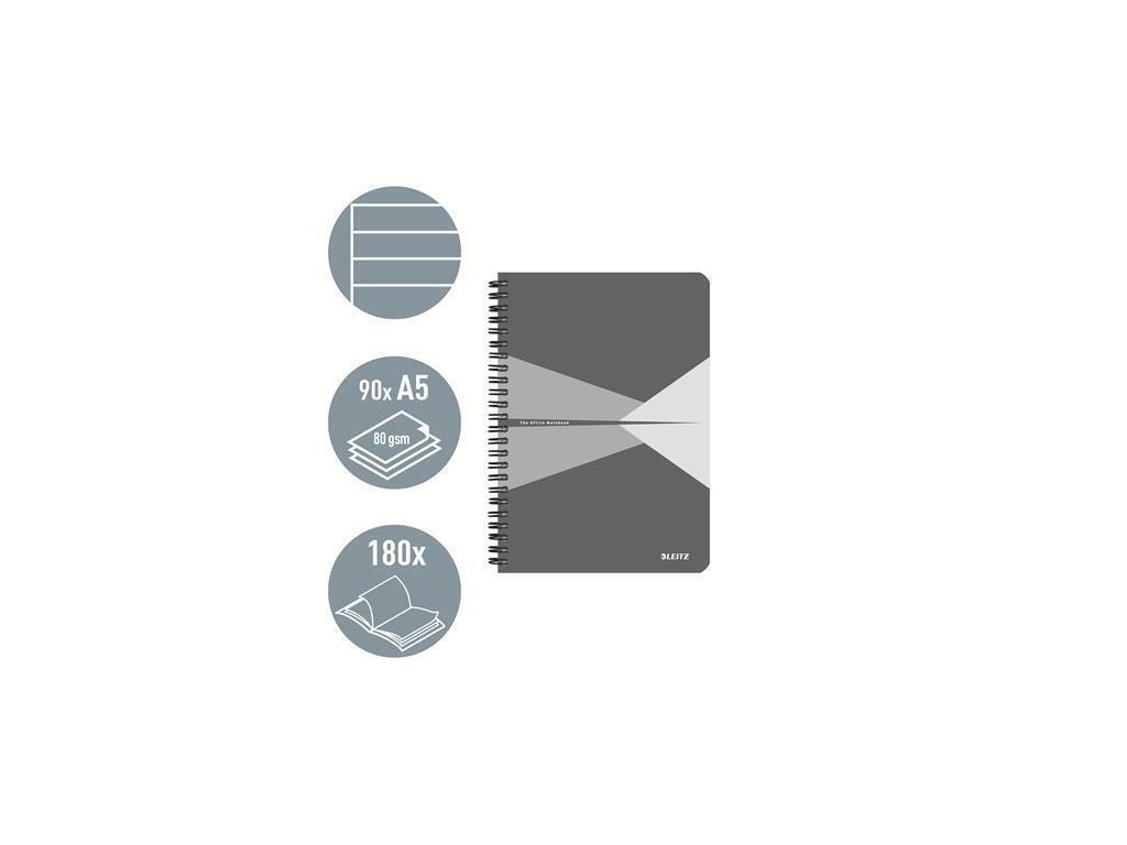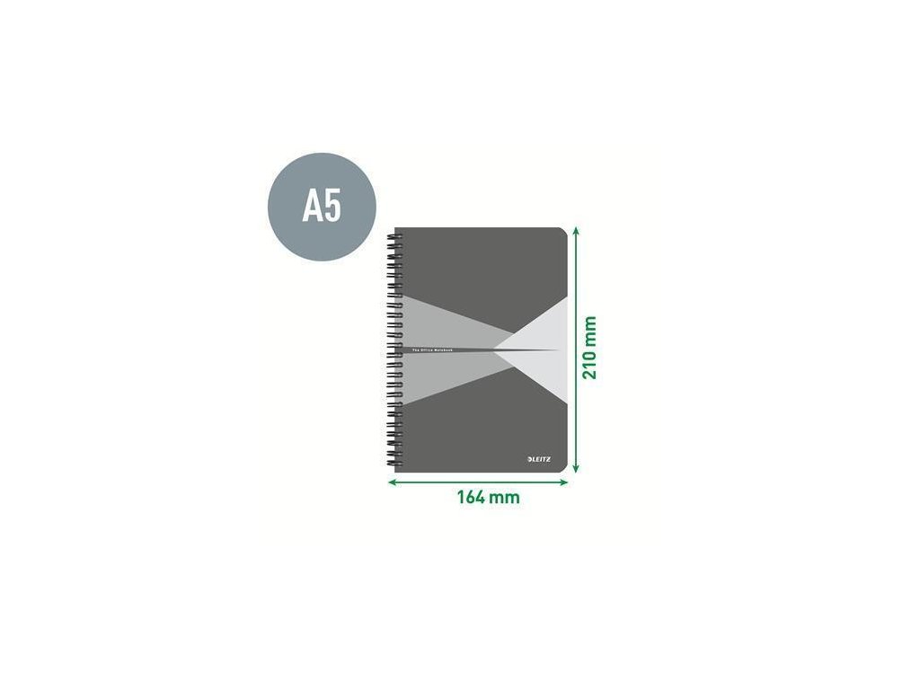 Blok "Office", šedá, drátěná kroužková vazba, A5, linkovaný, 90 listů, plastový povrch, LEITZ