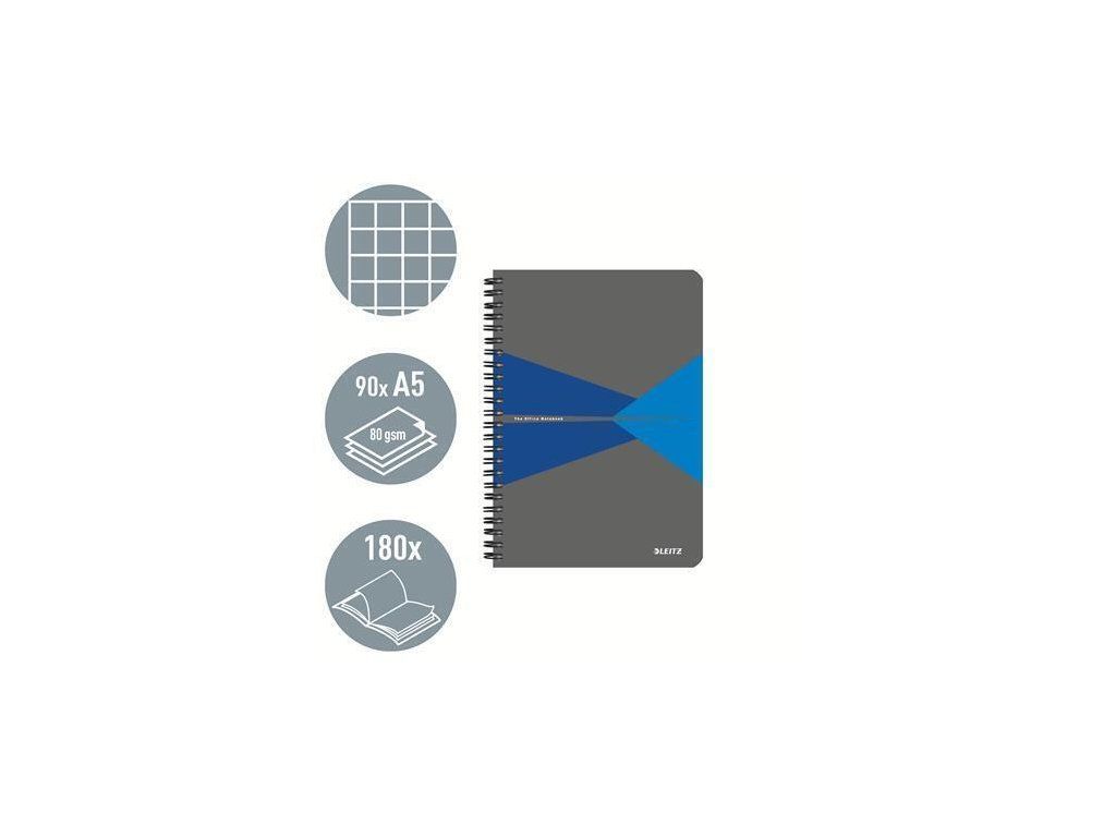 Blok "Office", šedo-modrá, drátěná kroužková vazba, A5, čtverečkovaný, 90 listů, laminovaný povrch,