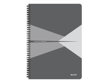 Blok "Office", šedo-modrá, drátěná kroužková vazba, A4, linkovaný, 90 listů, laminovaný povrch, LEIT