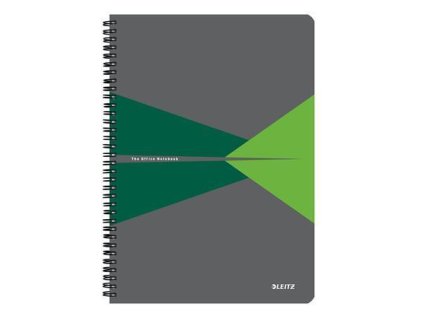 Blok "Office", šedo-zelená, drátěná kroužková vazba, A4, linkovaný, 90 listů, plastový povrch, LEITZ