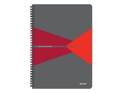 Blok "Office", šedo-červený, drátěná kroužková vazba, A4, linkovaný, 90 listů, plastový povrch, LEIT