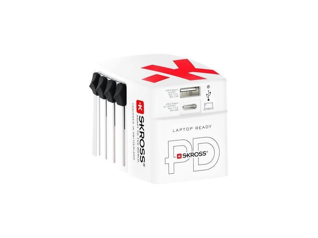 Cestovní adaptér, bílá, 1x USB-A / 1x USB-C PD, 65W, kabel USB-C, SKROSS 1.302333