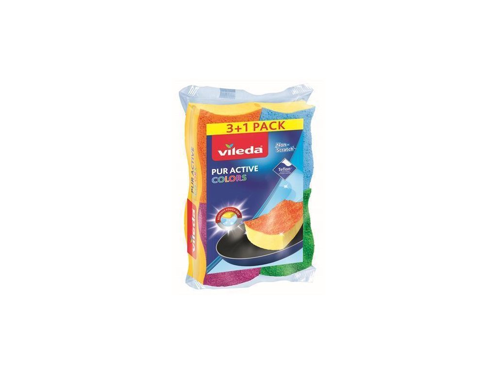 Čisticí houba "Pur Active Colors", 3+1 ks, VILEDA
