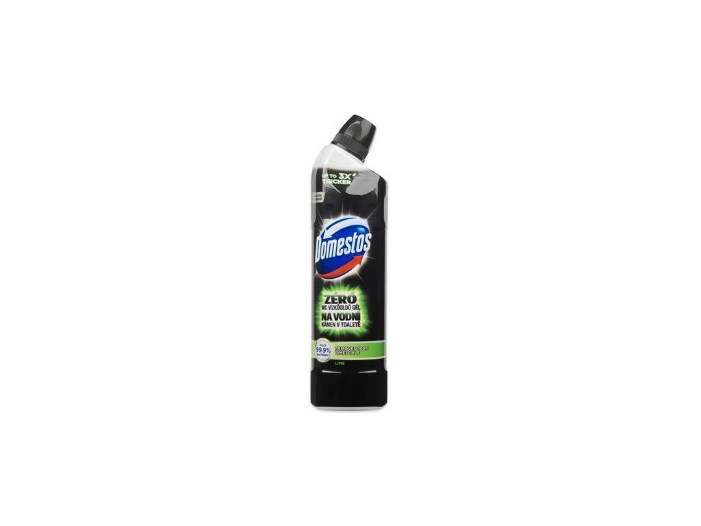 Čisticí prostředek univerzální na vodní kámen s vůní citrusuDomestos Zero Lime dokonale vyčistí vaši toaletu a spolehlivě ji zbaví vodního kamene. Díky hustému složení snadno přilne k povrchu toaletní mísy, kde bez nežádoucího stékání vydrží působit dlouhou dobu, a to dokonce i v oblasti pod vodní hladinou. Toaletu tak precizně vyčistí od vodního kamene a veškerých bakterií i v těžko přístupných plochách.