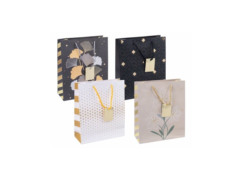 Dárková taška 25×30×10 cm mix vzorů zlatá 1 ks