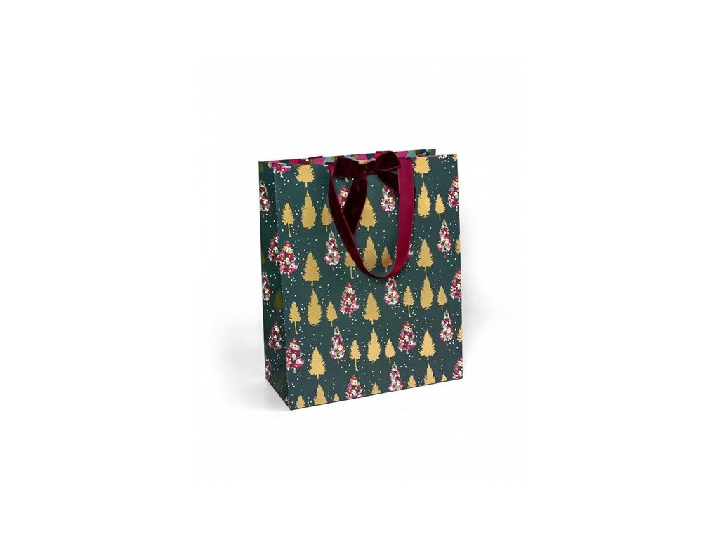 - Dárková taška s motivem vánočních stromků s velurovou mašlí, rychlý pomocník při balení vašich dárků