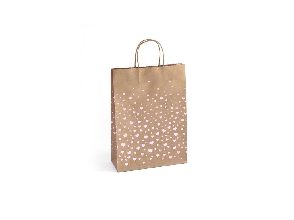 Dárková taška - L, 33 x 24, kraft,růž.srdíčka,5 ks