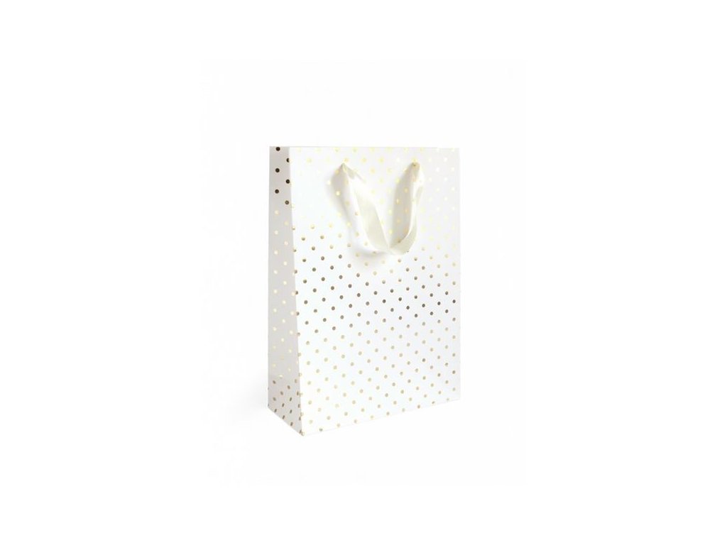 Dárková taška - L, 33 x 24cm, bílá, zlaté puntíky,