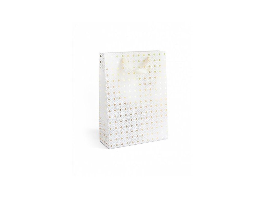 Dárková taška - L, 33 x 24cm, bílá, zlatý vzor, 5