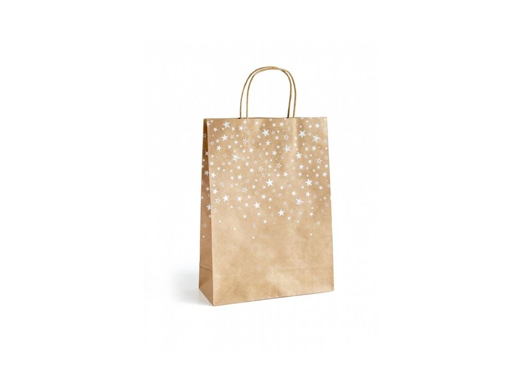 Dárková taška - L, 33 x 24cm, kraft, bílé hvězdičk