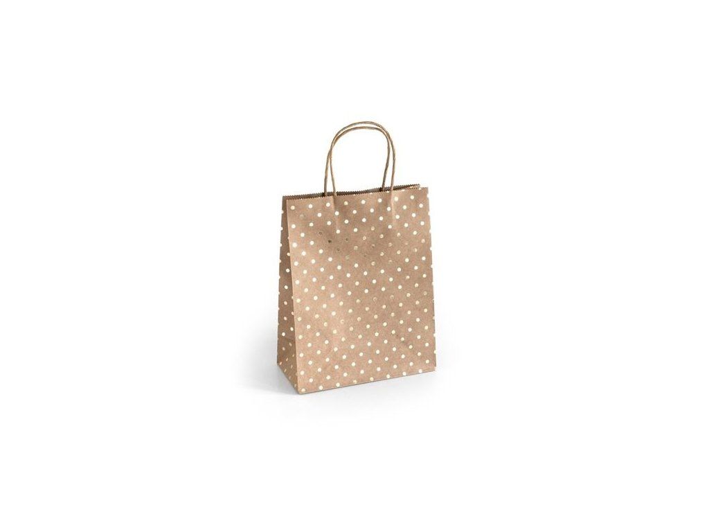 - taška z kraftového papíru s ozdobnými metalickými puntíky