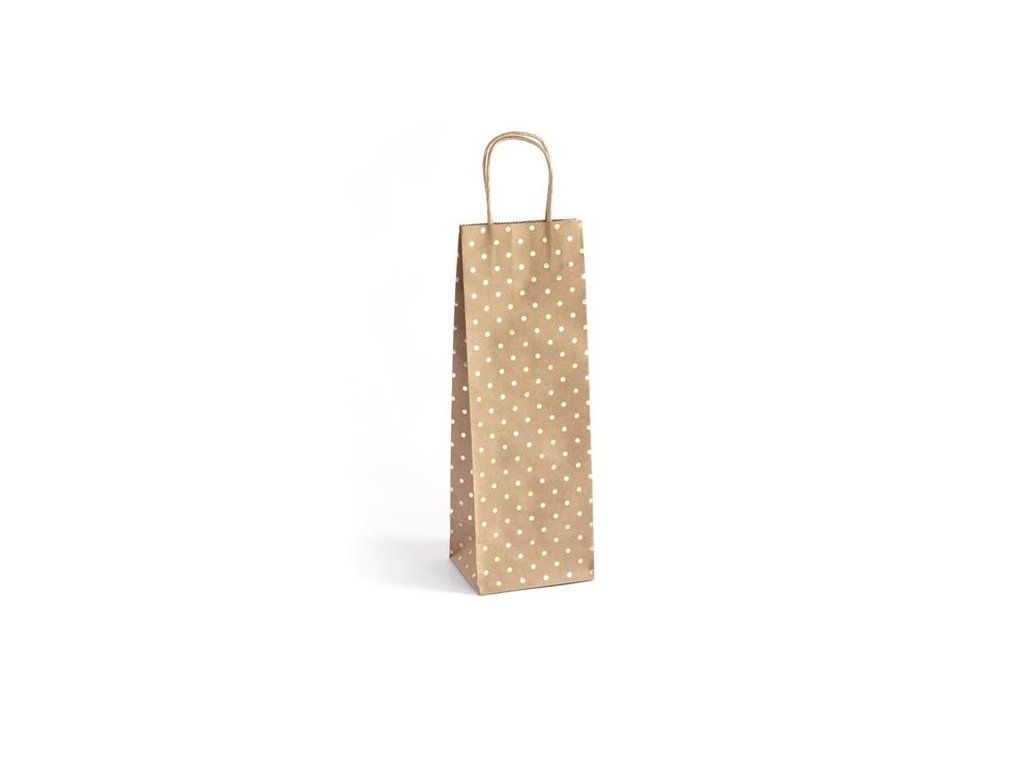 Dárková taška - na víno, kraft, zl.puntíky, 5 ks