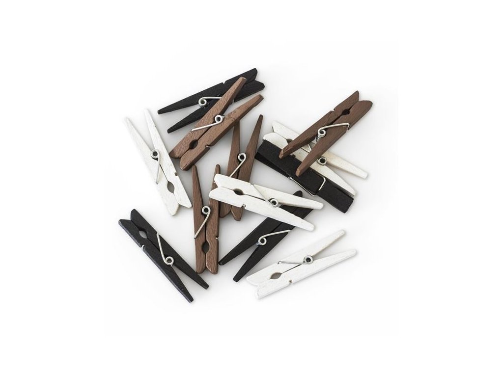Dekorační kolíčky dřevěné - 47 mm, mix barev, 12ks