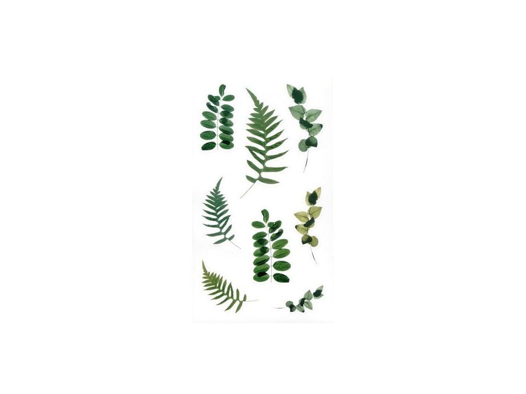 - Dekorativní samolepky s přírodními motivy kapradí a eukalyptu, tištěné na transparentní fólii