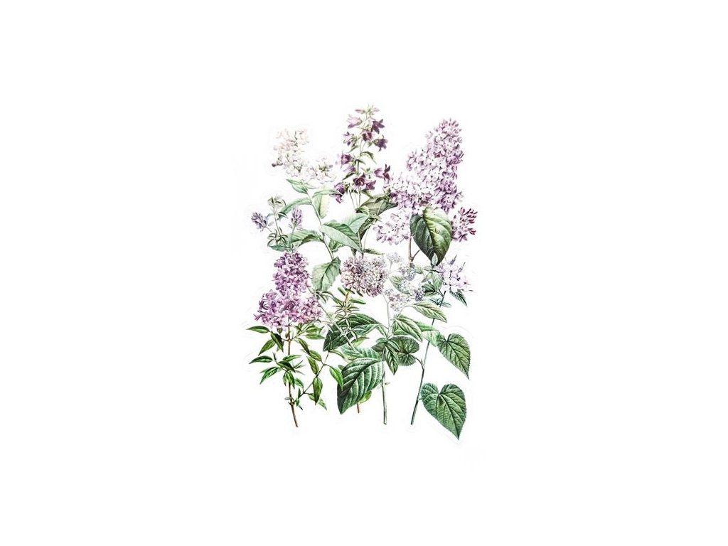 - Dekorativní samolepky v jemných odstínech šeříkové barvy, tištěné na transparentní fólii
