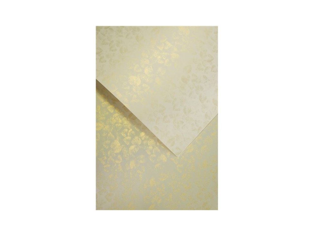 - Motiv drobných zlatých listů po obou stranách papíru