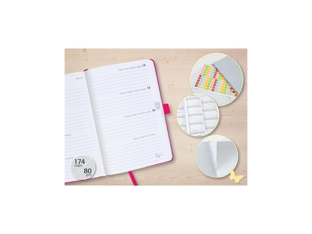 Diář "Jolie", Butterfly Confetti Candy, A5, týdenní, 2025, tvrdé desky, SIGEL J5347