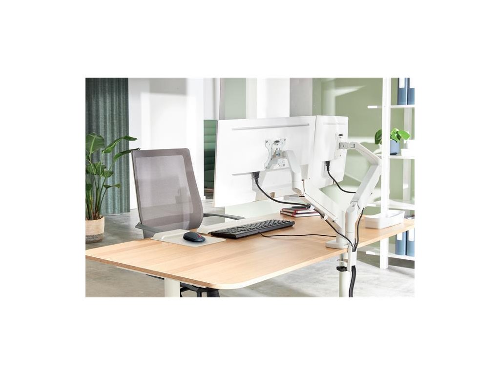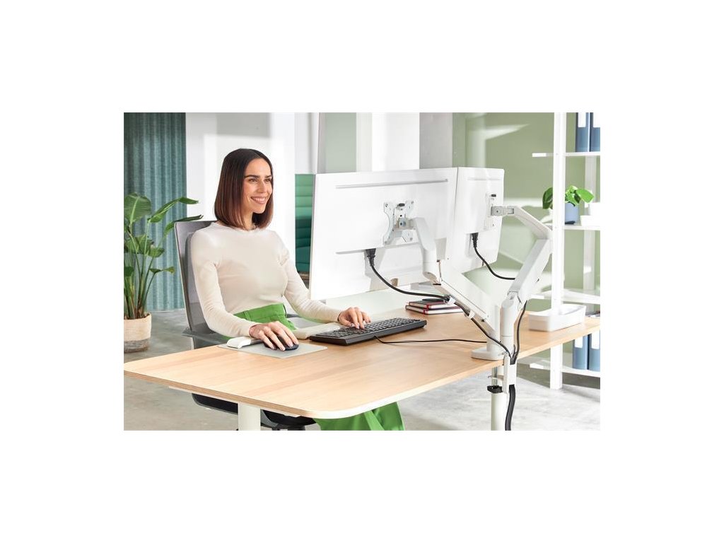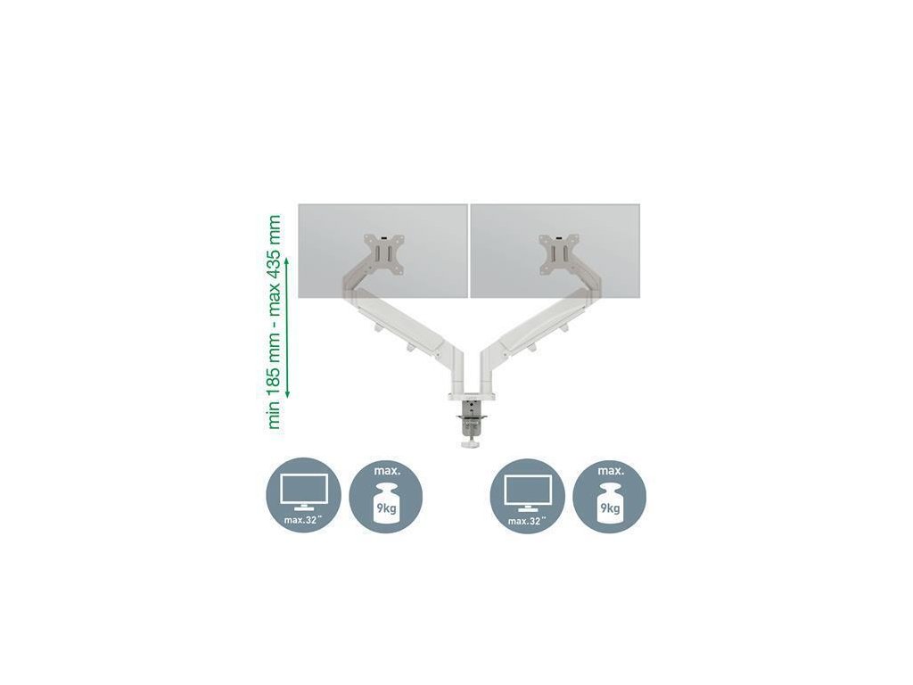 Pevná a stabilní konstrukce, ideální pro dva ploché nebo zakřivené monitory o velikosti 17"–32" a hmotnosti max. 9 kg každý