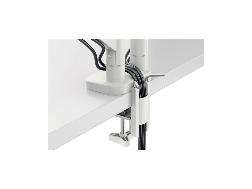 Snadná instalace díky přiložené rychloupínací, odnímatelné desce VESA (75 a 100 mm) a silikonem pogumovanému U-tvarovanému svorkovému úchytu, který tlumí vibrace a chrání povrch stolu, nebo montáží přes otvor ve stole (rozsah tloušťky desky: 10–80 mm)