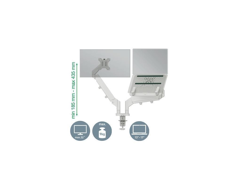 Držák na monitor a notebook "Ergo Dual", světle šedá, 2 ramena, LEITZ 65380085