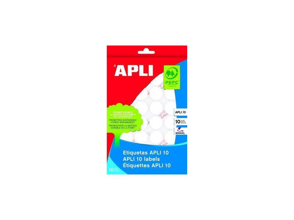 Etikety, kruhové, bílá, průměr 13mm, na ruční popis, 770 ks/bal., APLI