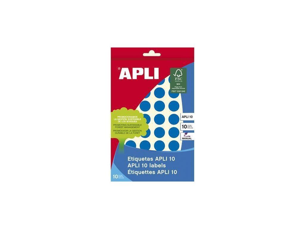 Etikety, kruhové, modrá, průměr 16mm, na ruční popis, 432 ks/bal., APLI