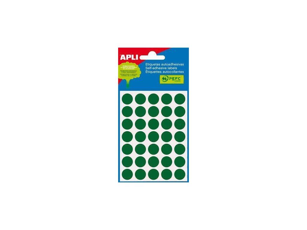 Etikety, zelené, kruhové, průměr 13 mm, 175 etiket/balení, APLI