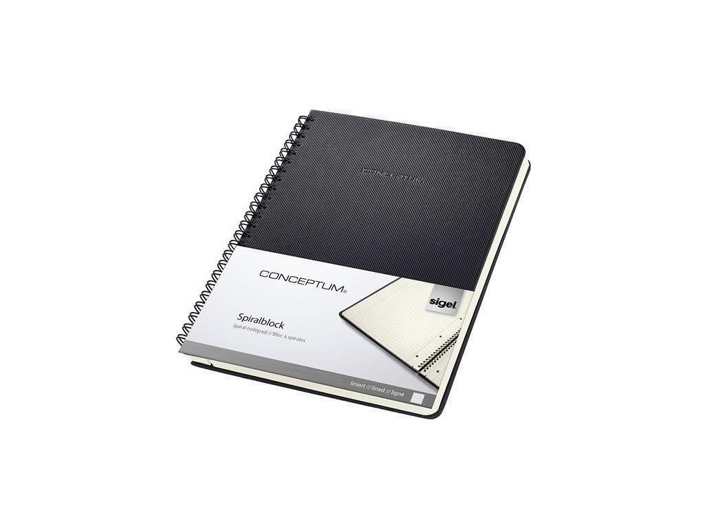 Exkluzivní spirálový sešit "Conceptum", černá, A5, linkovaný, 80 listů, tvrdé desky, SIGEL CO823
