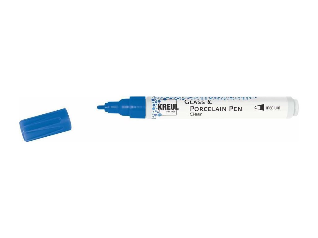 S fixy KREUL Glass & Porcelain Pen Clear mohou kreativci psát, kreslit a malovat na hrnky, sklenice, vázy, misky na cereálie a další předměty podle své fantazie. Transparentní barva na sklo a porcelán ve fixu je na vodní bázi a je ideální pro dekorativní zdobení skla, porcelánu, keramiky, kovu, akrylátu a zrcadel.