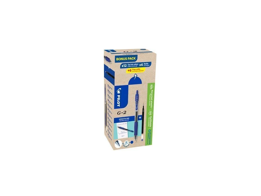 Sada obsahuje gelové pero a náhradní náplň G-2.Výsuvný gelový roller s gumovým úchopem, který přináší komfort při použití a zamezuje napětí při delším psaní. Viditelný stav náplně. Vyměnitelná náplň, vysoce odolná kulička si ponechává svůj tvar i při dlouhodobém užívání. Píše podle barvy úchopu.