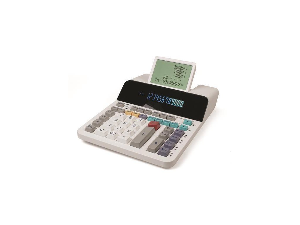 Velká kancelářská / účetní kalkulačka EL-1901 SHARP.Displej: 12místný nakloněný modrý fluorescenční displej