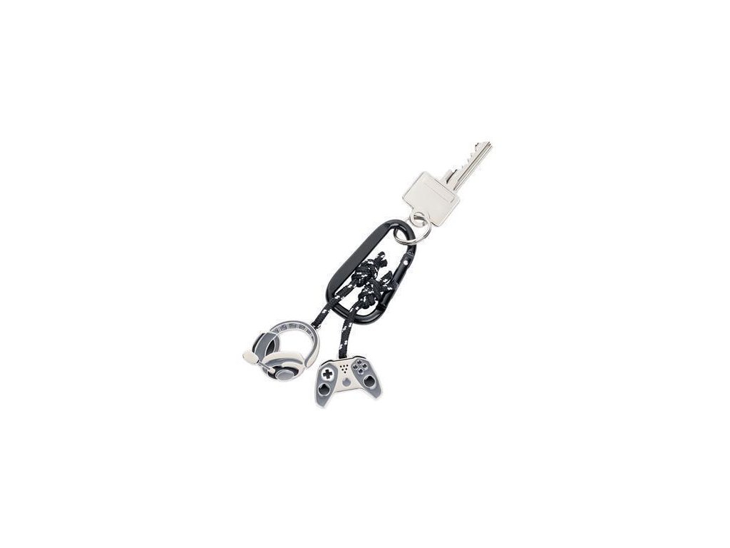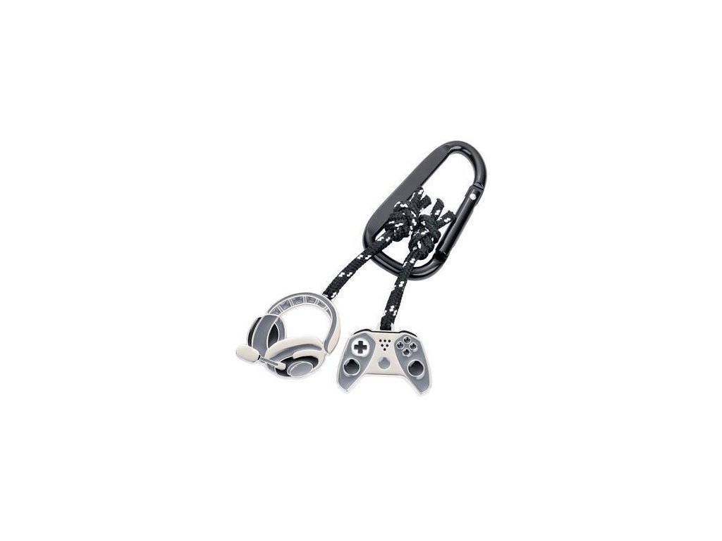 Vhodný společník pro hráče! Klíčenka s dekorem sluchátek a herní konzolí.Karabinka pro snadné připevnění