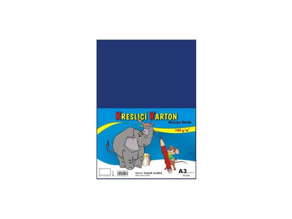 Kreslicí karton barevný. Formát: A3 (420 x 297 mm), 50 listů v balení, Plošná hmotnost: 180 g/m2Barva tmavě modrá.