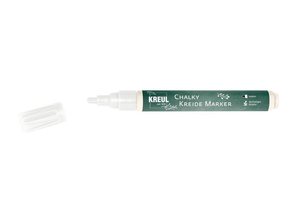 Design v křídovém vzhledu: KREUL Chalk Marker obsahuje tekutou křídu pro psaní na tabule a skleněné povrchy. Ideální pro nápisy na výloze nebo nákupní seznam na tabuli. Křídové kresby lze snadno odstranit vlhkým hadříkem.