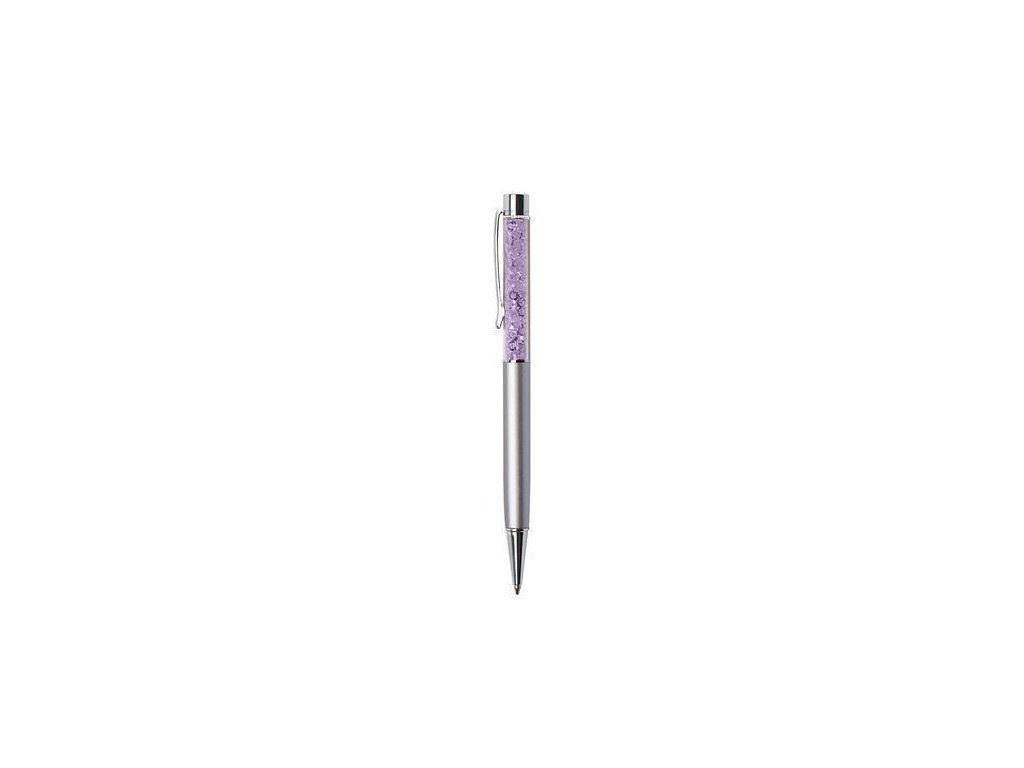 Kuličkové pero SWAROVSKI® Crystals, stříbrná, fialové krystaly v horní části pera, 14 cm, ART CRYSTE