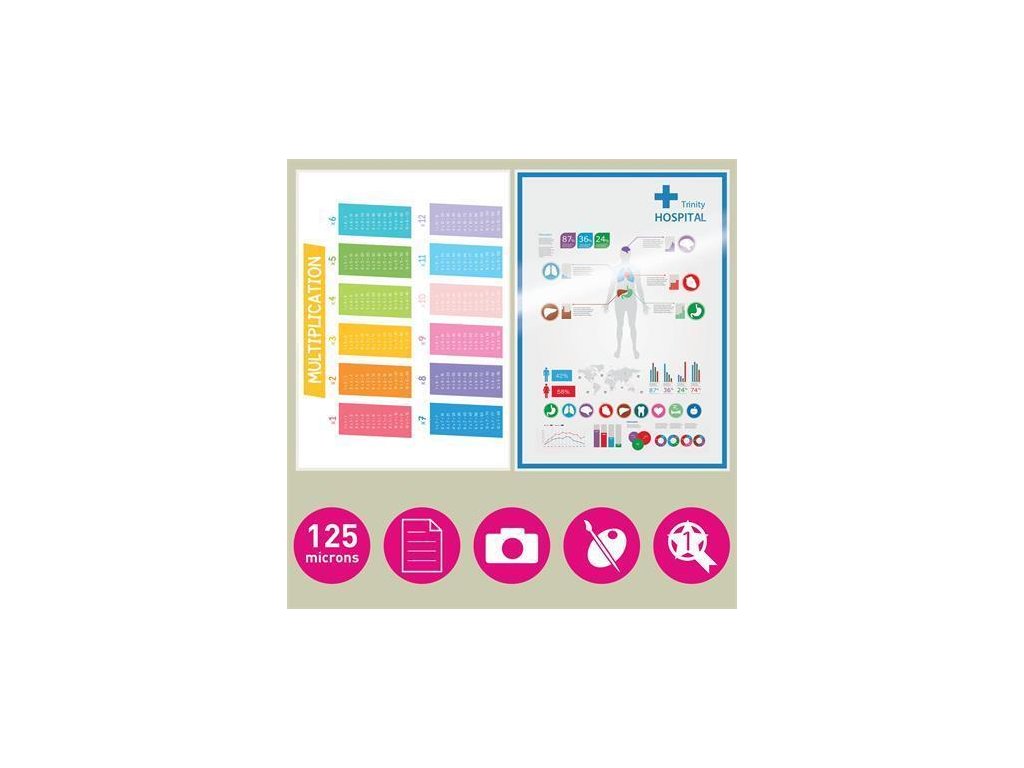 Dlouhodobá ochrana dokumentu před nečistotou, tekutinou a vlhkostí. Vysoká tuhost laminovaného dokumentu.