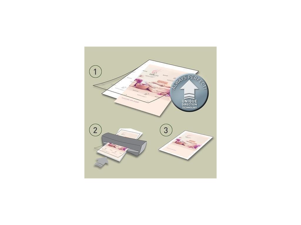 Již žádné obavy, že vložíte kapsu do laminátoru nesprávným směrem. Jedinečná směrovací technologie (UDT) přináší dokonalé výsledky. Kapsy nejvyšší kvality chrání zalaminovaný dokument.Unikátní směrovací technologie navádí ke správnému vložení kapsy ve směru šipek, které jsou umístěny na kapse a které po laminaci zmizí.