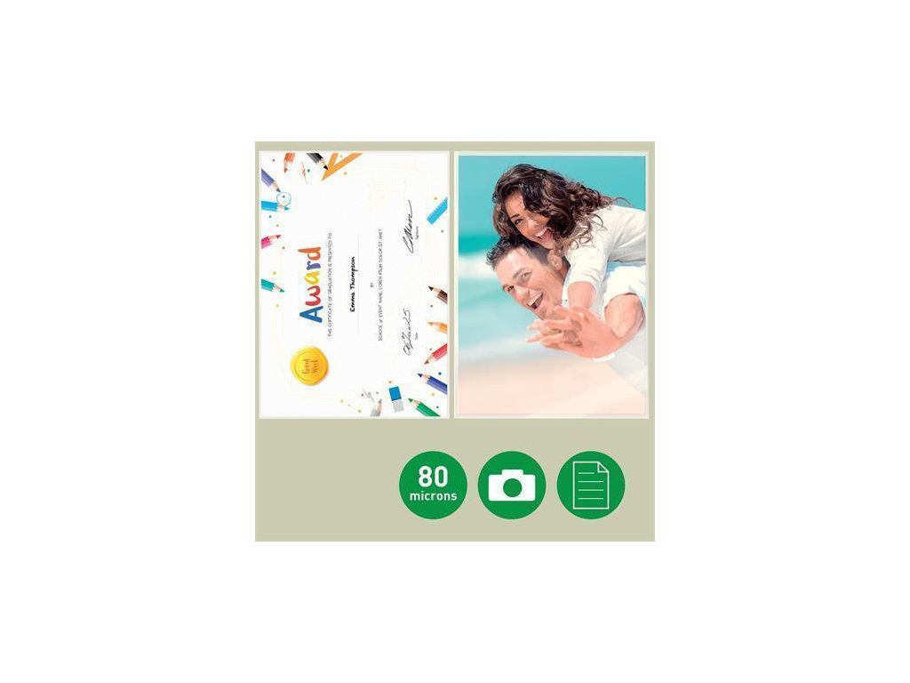 Dlouhodobá ochrana zalaminovaných dokumentů před nečistotou, tekutinou a vlhkostí. Standardní tuhost laminace.
