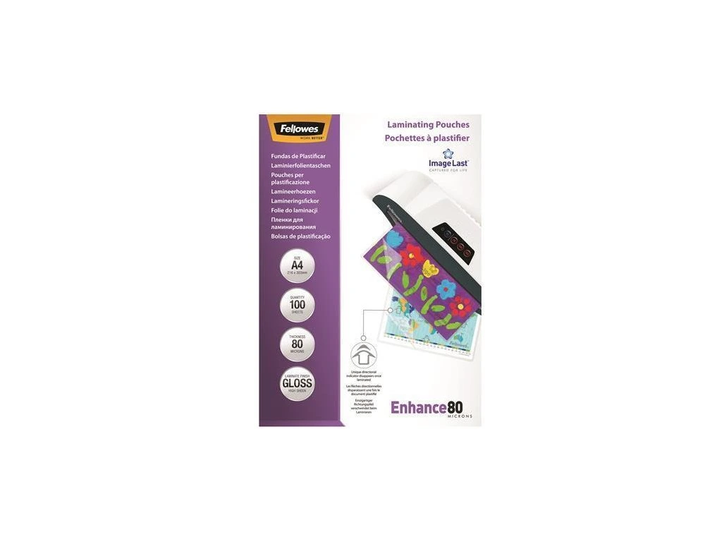 Laminovací fólie, lesklá, A4, 80 micron, FELLOWES