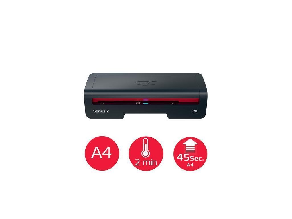 GBC 240 je elegantní a efektivní řešení pro každodenní laminování. Tento A4 laminátor, navržený s důrazem na styl a výkon, je ideální pro použití doma nebo v domácí kanceláři.Rychlé zahřátí - připraven k použití za 2 minuty