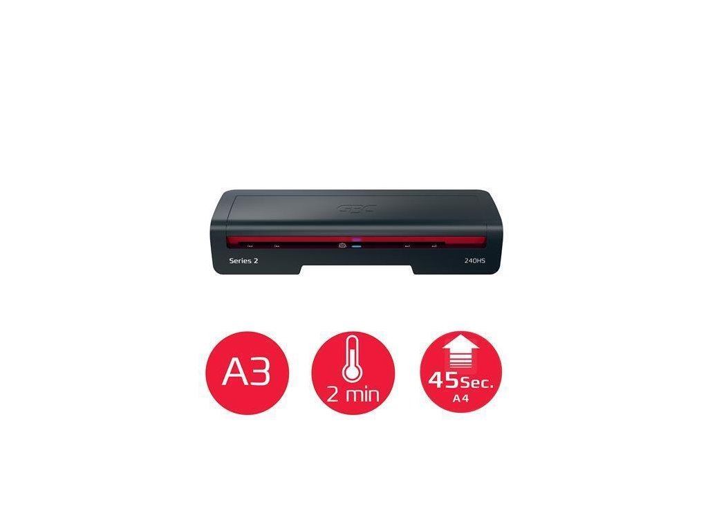 GBC 240HS je elegantní a efektivní řešení pro každodenní laminování. Tento vysokorychlostní A3 laminátor, navržený s ohledem na styl a výkon, je ideální pro domácnosti i domácí kanceláře.Rychlé zahřátí - připraven k použití za 2 minuty