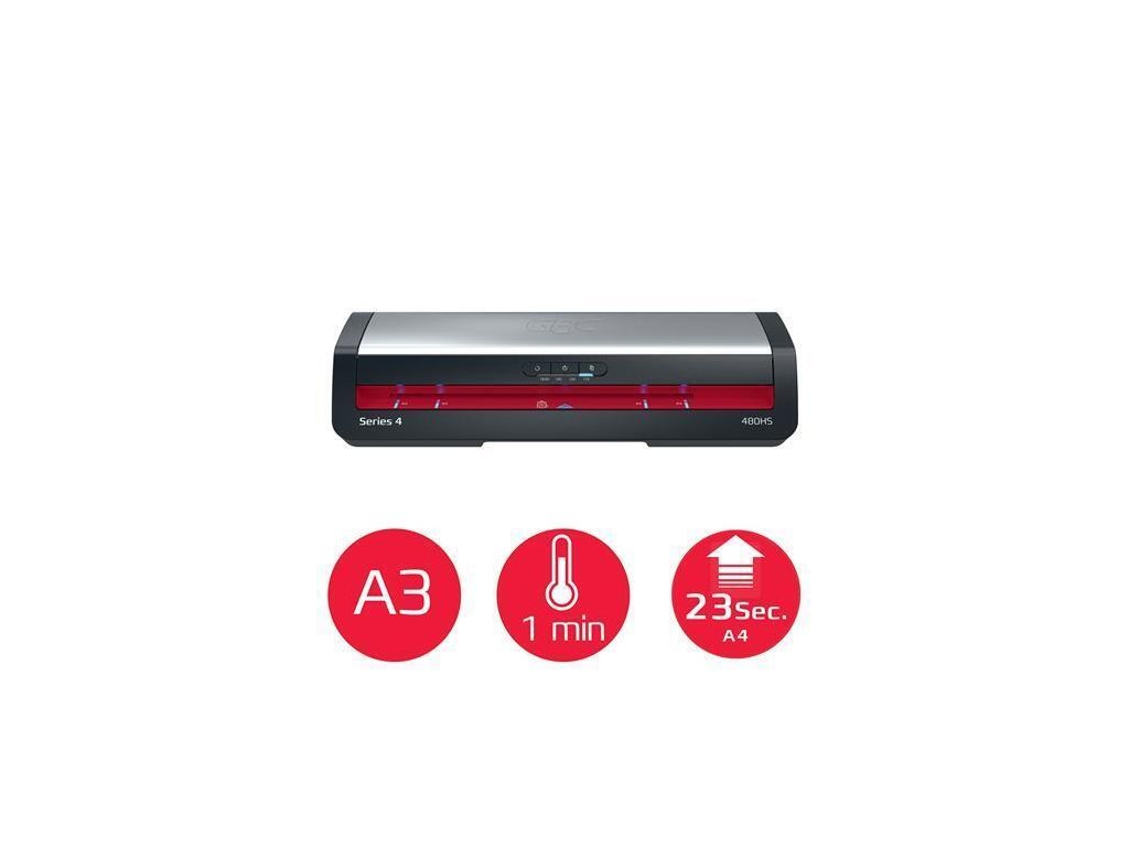 GBC 480HS A3 laminátor je spolehlivým a výkonným řešením pro laminaci ve velkém objemu. Tento vysokorychlostní laminátor, navržený pro profesionální prostředí, kombinuje špičkový výkon s jednoduchou obsluhou.Rychlé zahřátí - připraven k použití za 1 minutu