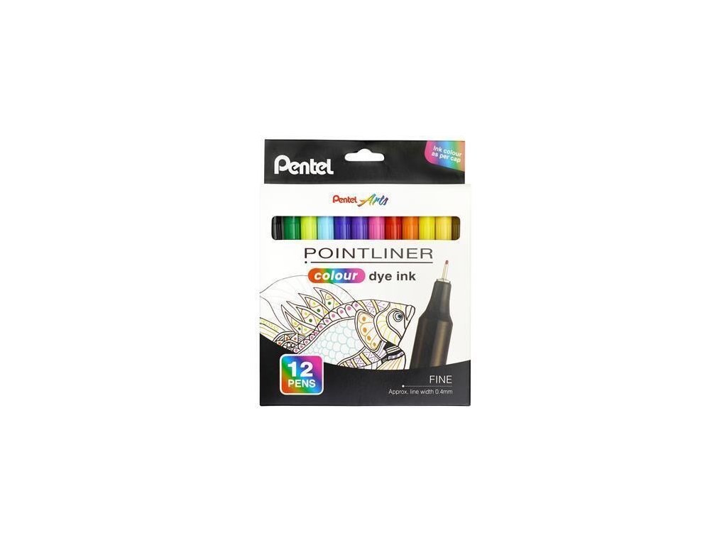 Liner "Pointliner", 12 různých barev, 0,4 mm, sada, PENTEL S40-12